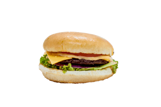 Beefburger met cheddar cheese, burger inn saus, sla, tomaat, ui en augurk