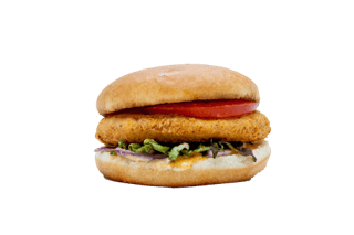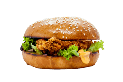 Crispy chicken met burger inn saus, sla, tomaat, ui en seeded bunn